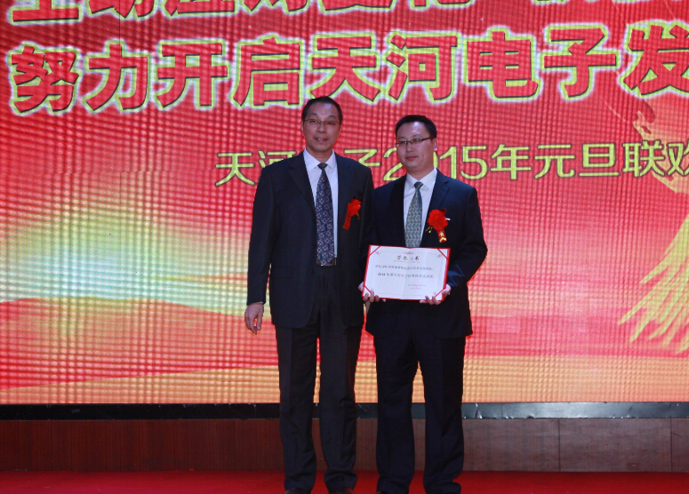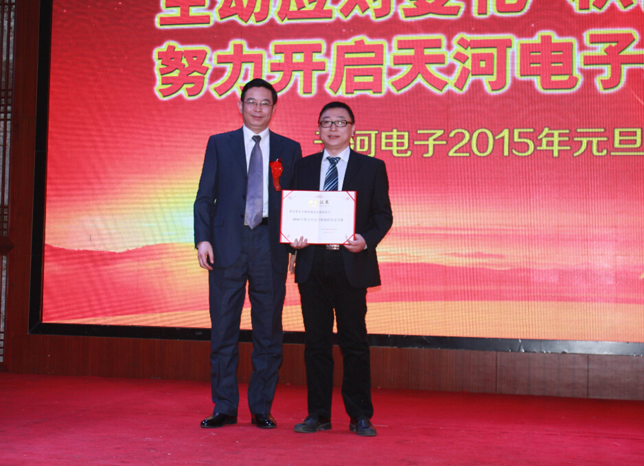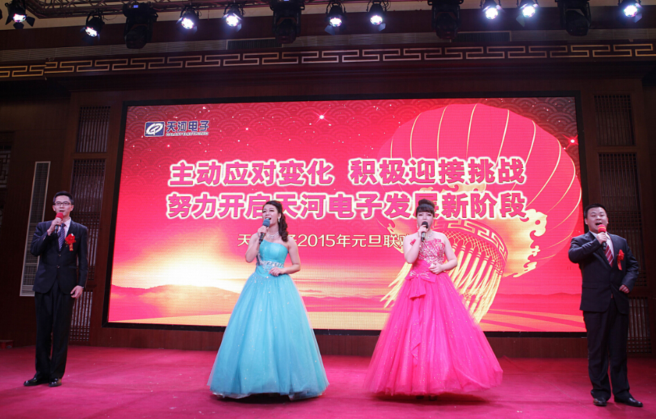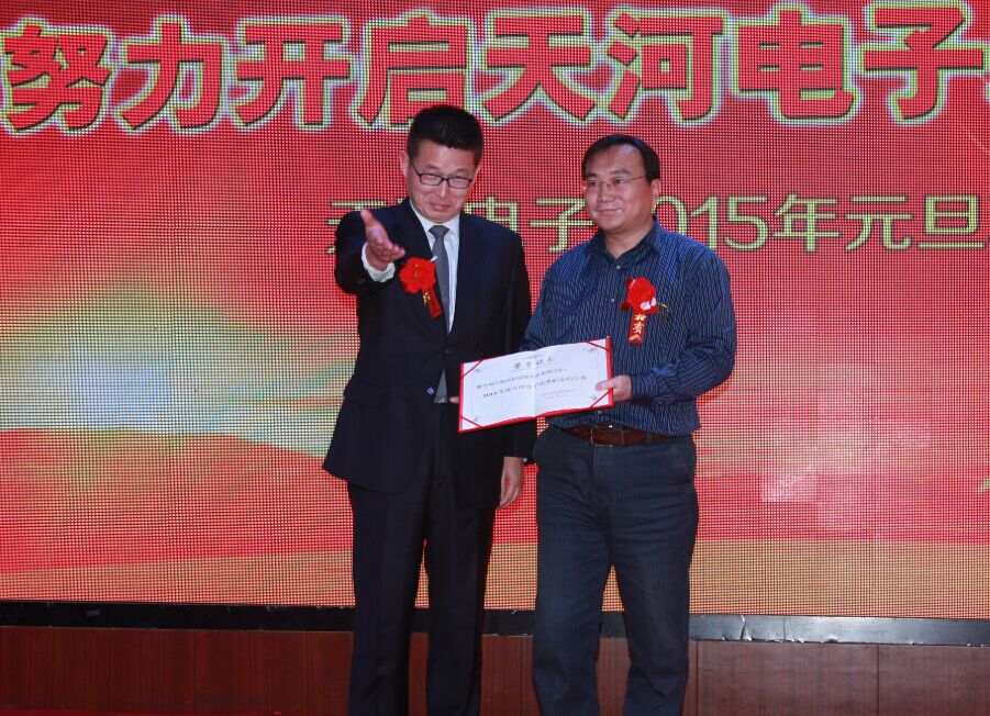 2014年12月31日下午4時整,天河電子2015年元旦晚會在星光大酒店二樓場鑫軒隆重舉行,大會表彰了2015年度在市場、研發(fā)、工程等領域作出突出貢獻的優(yōu)秀團隊和個人。公司總經理苗立在會上做了重要講話,總結了2014年我們所做出的成績和不足,分析了公司目前所處的內外形勢,并為公司2015年的工作指明了方向。